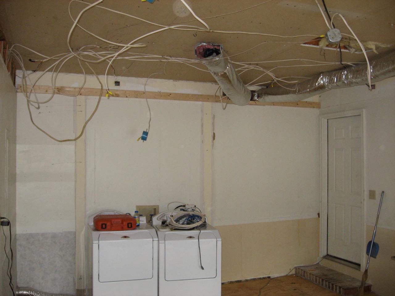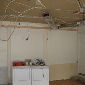 Having problems with a suspended ceiling collapse we transformed this formerly converted garage to a wonderful living space. Newly framed and finished drywall ceiling and closet, along with flooring, electrical and exterior door (not shown).